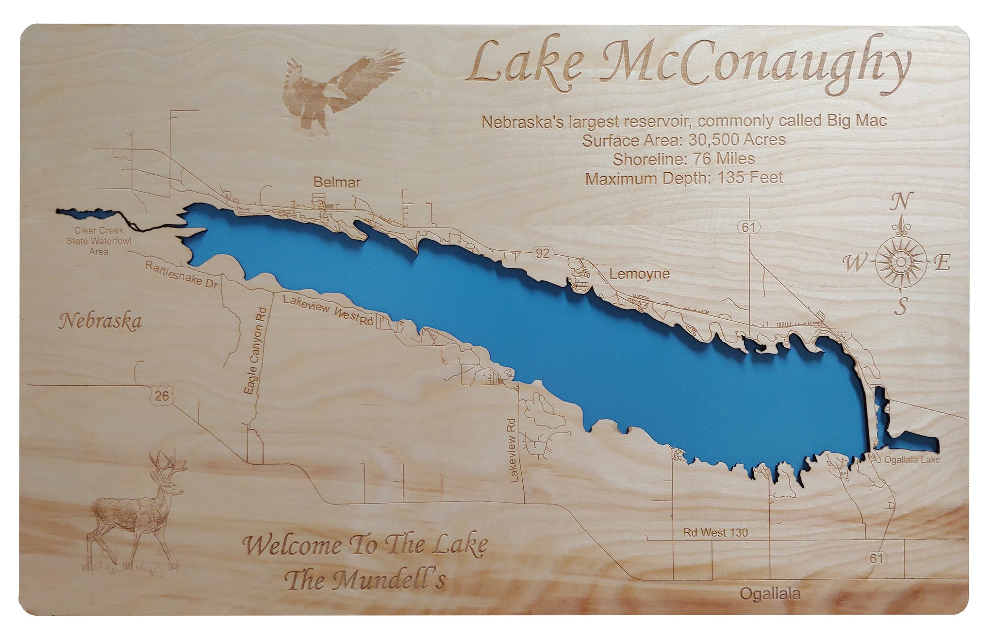 Lake McConaughy, Nebraska Laser Cut Wood Map| Personal